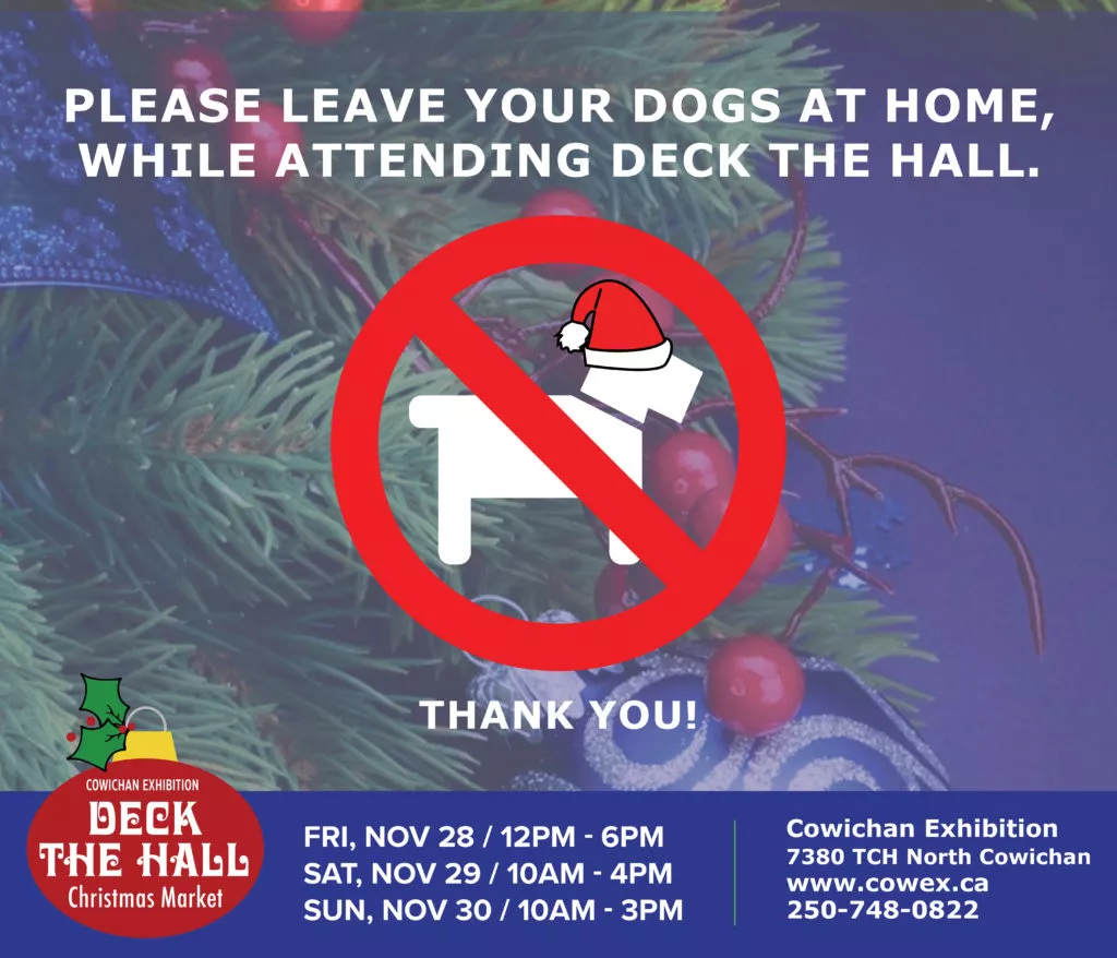 We are happy to provide you with some promotional material to distribute for the Christmas Market. Invite your clients, friends and family by handing out one of our Deck the Hall Business cards or add to your social media platforms to let people know you’ll be here! Hang up a poster in town and be sure to share the event through Cowichan Exhibition social media as well as your own!